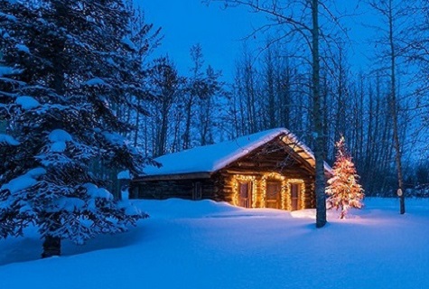 The Zeilers visit a cabin in the woods that's lit by white Christmas lights.