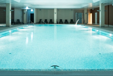 The Zeilers and Athena swim in their indoor pool at their log cabin.
