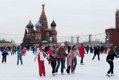 The Zeilers and Athena ice skate in Red Square.