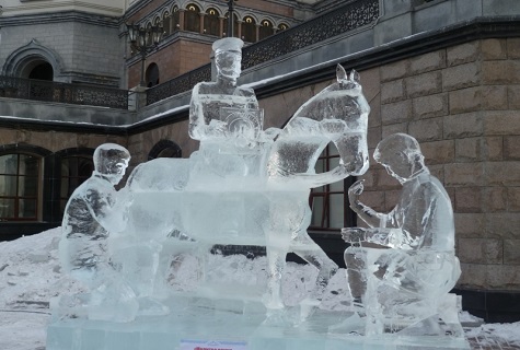 Tristan enters an ice-sculpture competition outside a church where